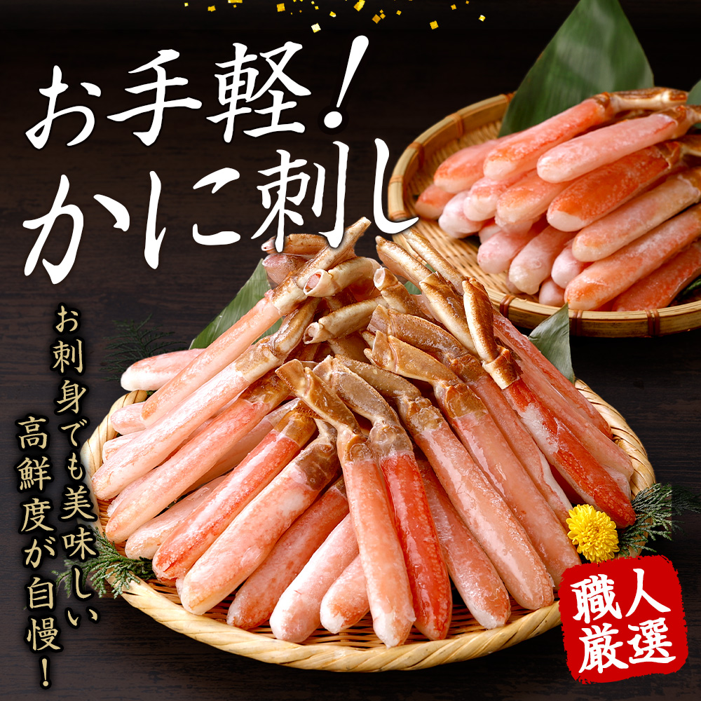 | 商品内容 | 生冷凍/生食可 ズワイガニしゃぶポーション 計500g前後 ※本数の指定不可 ※生冷凍商品は、品質保持のため酸化防止剤を仕様 |