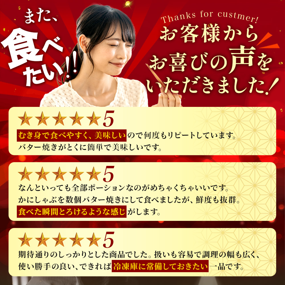 ◆可食部100%・職人仕上げ・急速冷凍で鮮度キープ