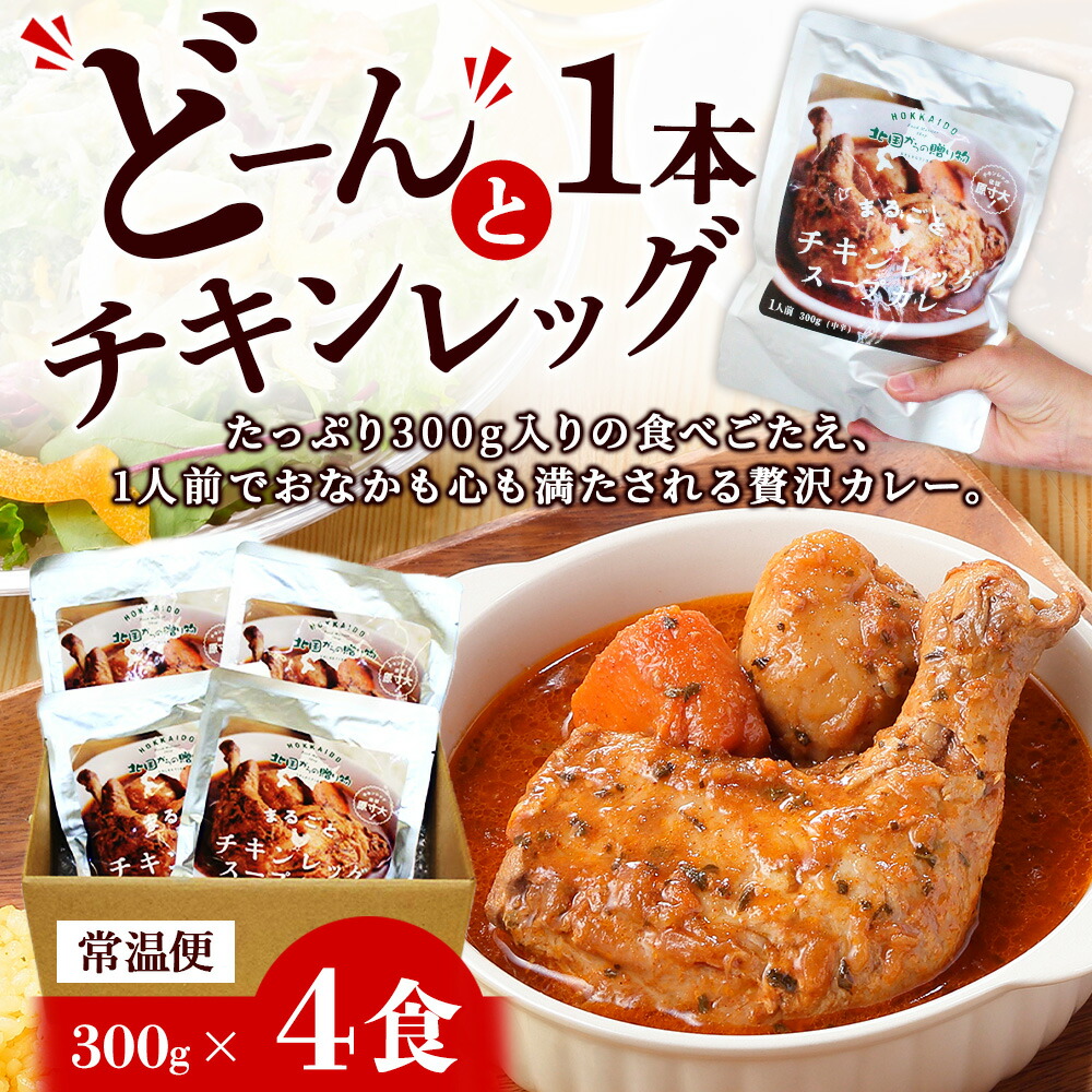 | 商品内容 | 北国の丸ごとチキンレッグ!スープカレー300g業務用4食セット チキンの重量:140-180g前後 |