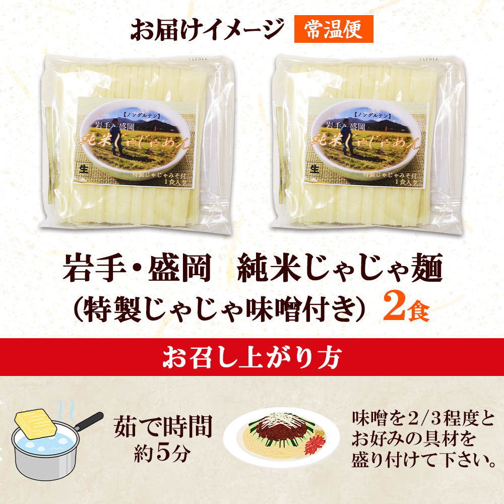 | 商品内容 | 岩手県産米 米粉麺 盛岡じゃじゃ麺×2袋 (特製じゃじゃ味噌付き付) |