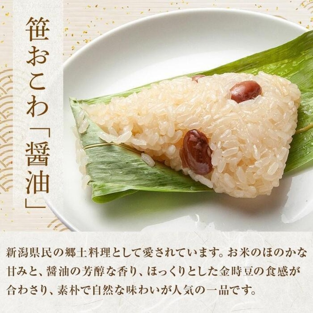 今回お届けするのは、「醤油笹おこわ」です。新潟県民の郷土食でもある「醤油笹おこわ」。お米のほのかな甘みと、醤油の芳醇な香り、ほっくりとした金時豆の食感が合わさり、素朴で自然な味わいが人気の一品です。