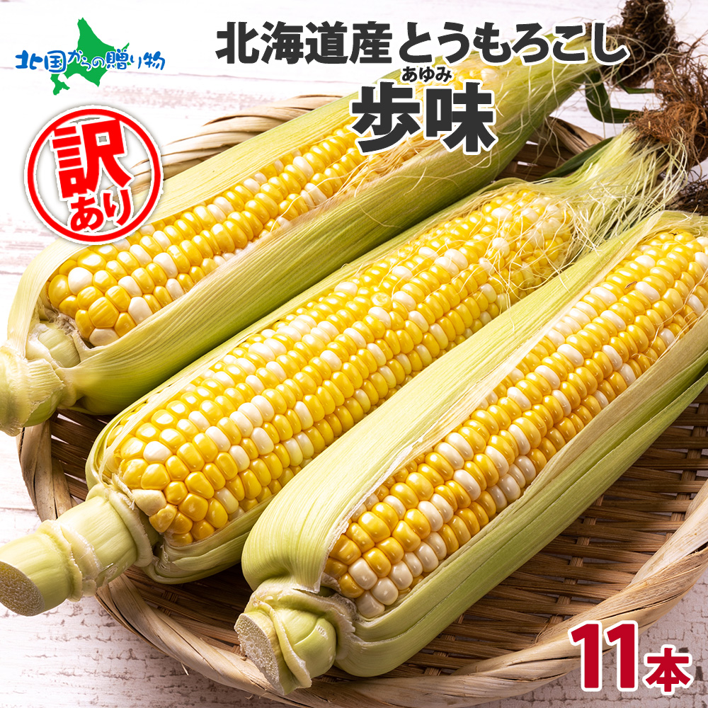 とうもろこし わけあり 歩味 11本 北海道産 訳あり トウモロコシ あゆみ バイカラー 8月中旬-9月下旬