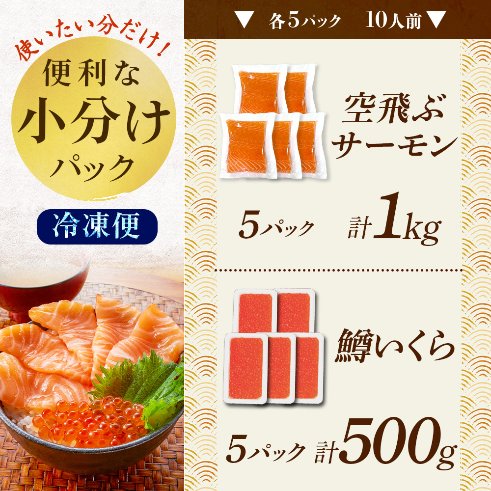 ■商品内容:鱒いくら500g/サーモン1kg 10人前(各5パック)