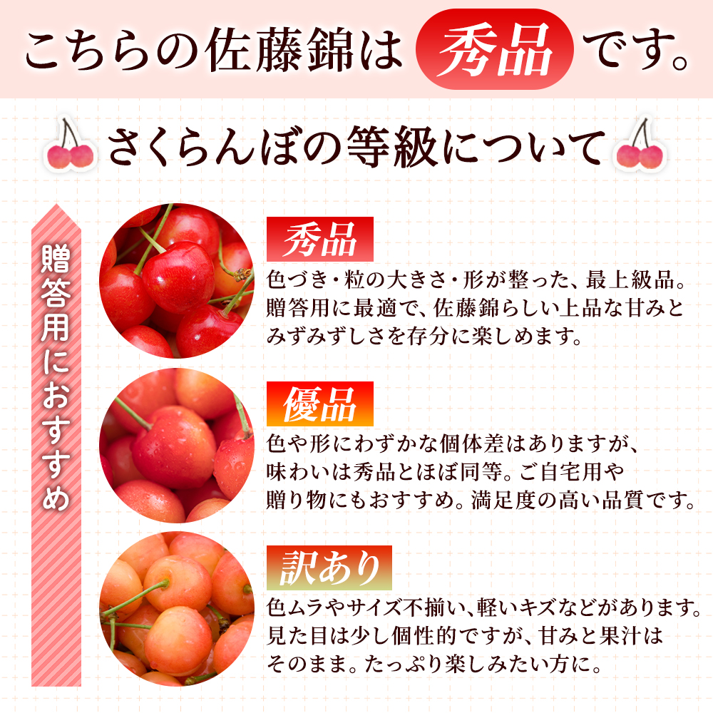 さくらんぼ 佐藤錦 秀品 L玉 600g 山形県産 サクランボ 父の日 ギフト 果物 フルーツ 山形