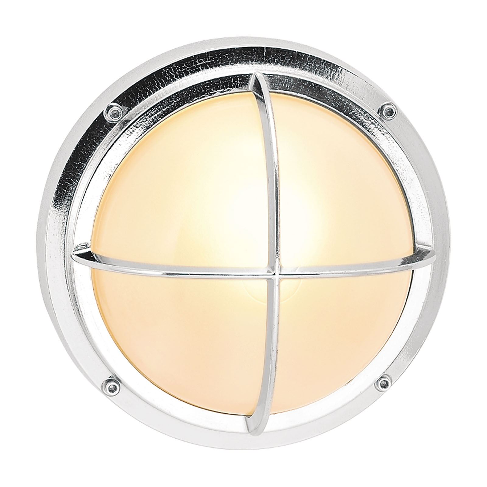 最新のLEDランプを採用した省エネ、長寿命仕様。伝統的な十字模様のセードが落ち着いた雰囲気。船舶用の照明器具をして使われてきた大型のバルクヘッドライト(船舶の隔壁、艦橋部壁付け、天井付けの照明)を日本のエクステリア用にアレンジしたガーデンライト。取付方向も壁面、天井、に対応。クローム仕上げの本商品は、経年変化が少なくメインテナンスフリーにてお使い頂けますが、まれに空気中の化学物質と反応して、表面に白い粉のようなものが付くことがあります。その際には、金属研磨剤でメインテナンスしてください。屋外だけでなく、玄関回り室内等の空間にオススメ。取付方向も壁面、天井、に対応。