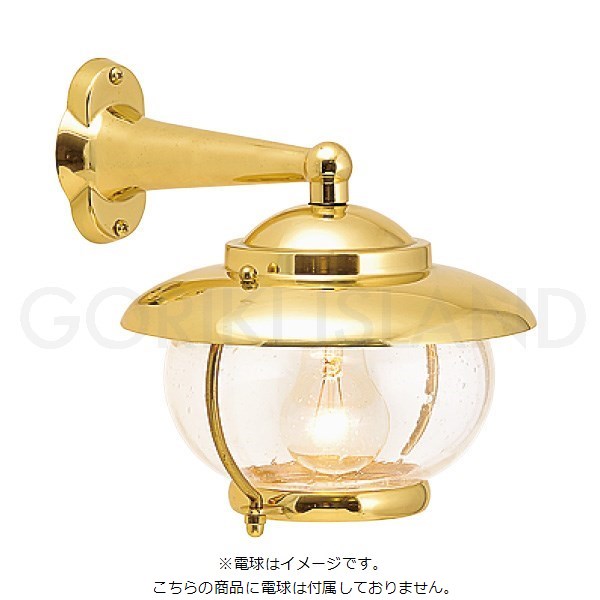 お好きな電球を選んで取り付けられる!電球付属なしタイプ。電球をご自身で選びたいお客様のご要望にお応えし、電球付属なしタイプの照明をご用意しました。お部屋の雰囲気やご使用の用途に応じた電球をカスタマイズできます。こちらの商品をご購入後に電球を別途ご購入ください。フィッシャーマンズスタイルのエクステリアライト。コンパクトなサイズのカサとガラスの保護ゴーグルが重厚さと洗練された美しさが魅力。本体を真鍮のダイカストという贅沢な方法で鋳造し、彫りの深い表情をしています。屋外だけでなく、玄関回り室内等の空間にオススメ。