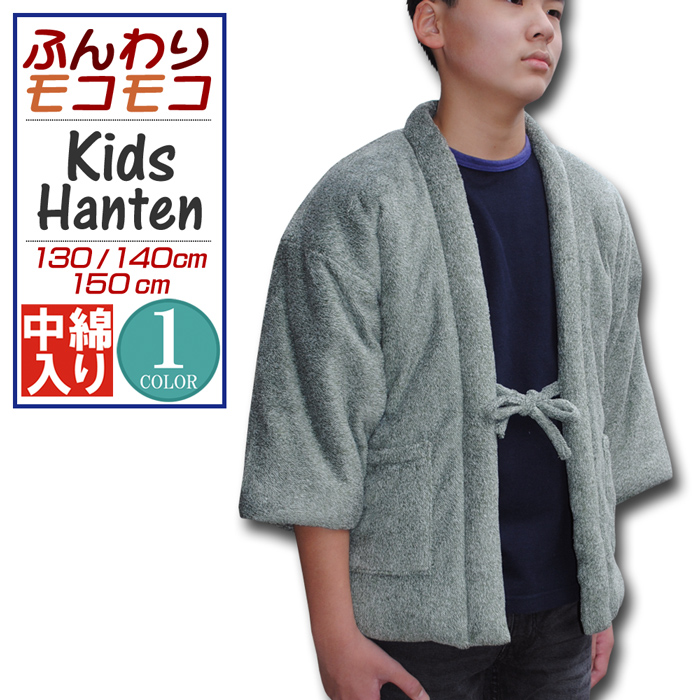 半纏 はんてん キッズ ふんわり モコモコ 中綿入り 子供 半纏 130 ・ 140 ・ 150 cm ポリエステル 100% おしゃれ こども 男の子 男児 ボーイズ kids hanten