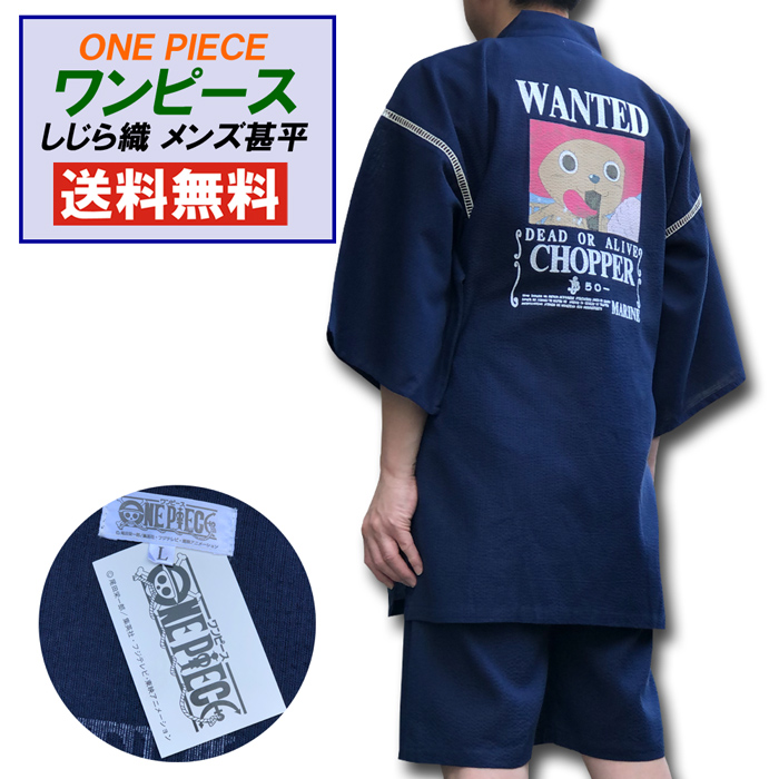 背中に『チョッパー』のプリントと左胸に『 ONE PIECE 』のアップリケを付けたキャラクター甚平。