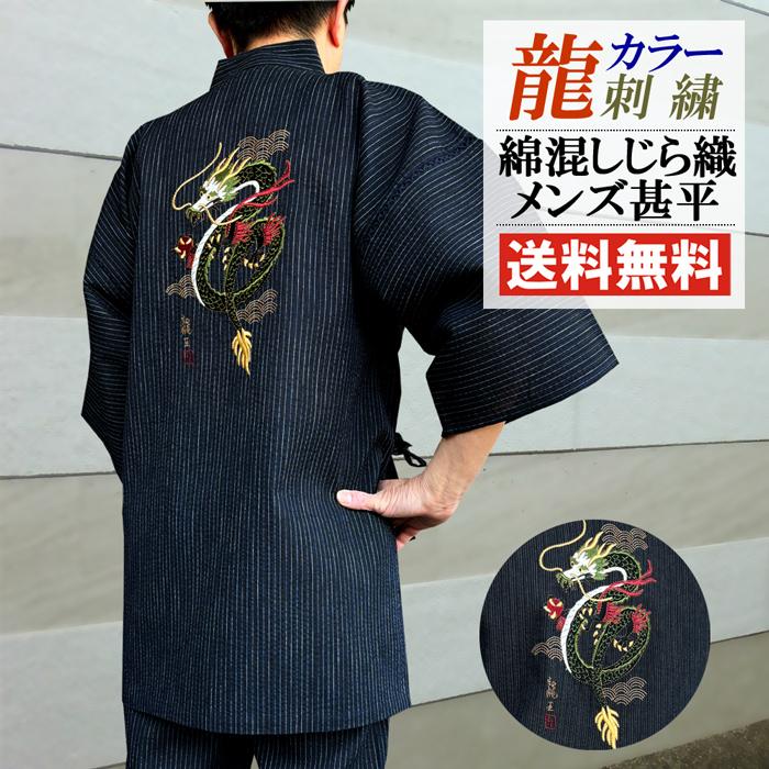 父の日 甚平 メンズ 龍 刺繍 綿混 しじら織 甚平 じんべい 男 送料無料 しじら織り 和柄 甚平 おしゃれ 甚平 夏 祭り 作務衣 パジャマ ルームウエア 部屋着