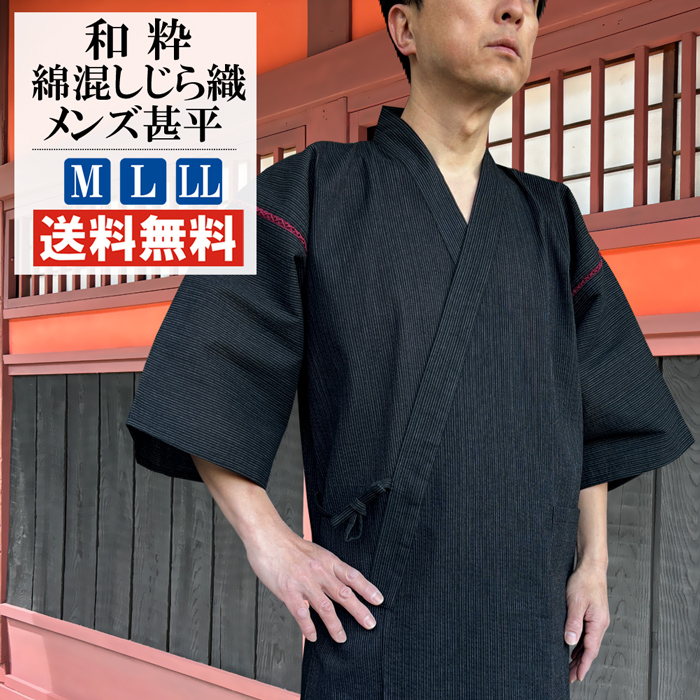 織り方は「シボ」と呼ばれる独特な凹凸が特徴のしじら織。「シボ」はシャリ感を感じさせ、汗ばむ季節にぴったりの メンズ甚平 です。