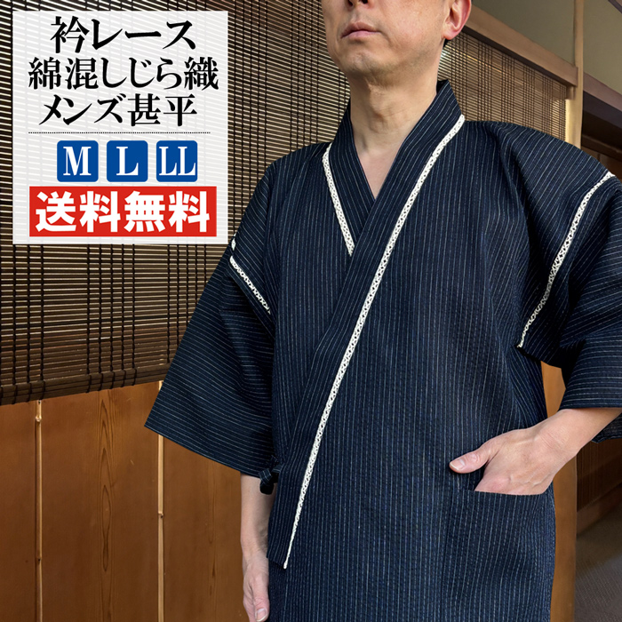 父の日 甚平 メンズ 衿レース 綿混 しじら織 甚平 じんべい 男 送料無料 しじら織り 和柄 甚平 おしゃれ 甚平 夏 祭り 作務衣 パジャマ ルームウエア 部屋着