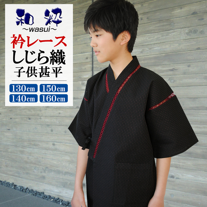 甚平 キッズ 和粋 衿レース しじら織 子供 甚平 男 綿100% 130 140 150 160 cm 対応 しじら織り 和柄 甚平 男の子 パジャマ ルームウエア 部屋着