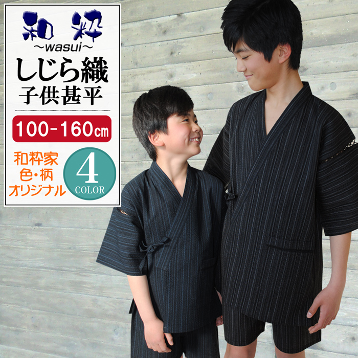 甚平 キッズ 和粋 しじら織 子供 甚平 男 綿100% 100 110 120 130 140 150 160 cm 対応 しじら織り 和柄 甚平 男の子 パジャマ ルームウエア 部屋着