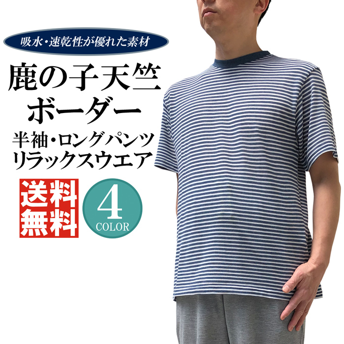 父の日 パジャマ メンズ 鹿の子 天竺 ボーダー Tスーツ ルームウエア 男 送料無料 半袖 ロングパンツ ルームウェア 部屋着 メンズパジャマ 夏 リラックスウエア