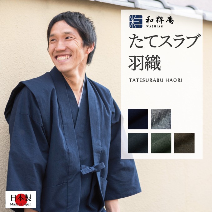 太さの違う糸を敢えて紡績することで、スラブと呼ばれる凹凸ができます。 たてスラブ作務衣は着用シーズンが長いため、一年を通して御注文が絶えない和粋庵の定番商品ですが、あわせの羽織をご期待にお応えする形で商品ラインナップに加えることとなりました。