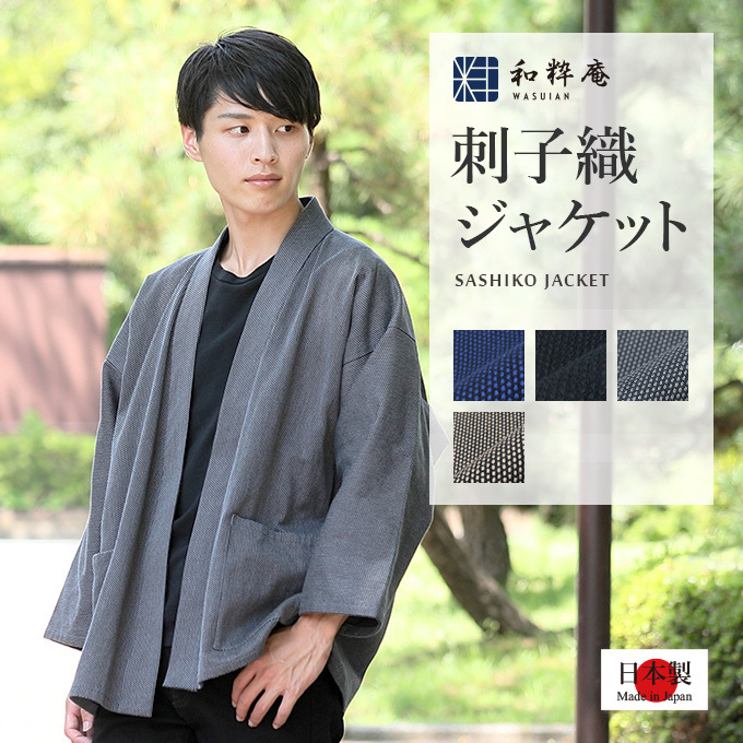 1074 作務衣 羽織 メンズ 刺子織ジャケット 日本製 和粋庵 秋冬向き 男性