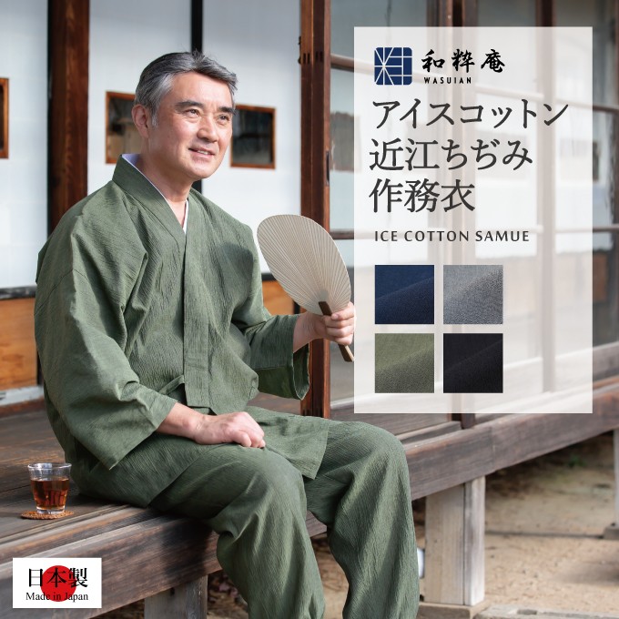 1105 作務衣 日本製 アイスコットン近江ちぢみ作務衣 男性 メンズ 夏用