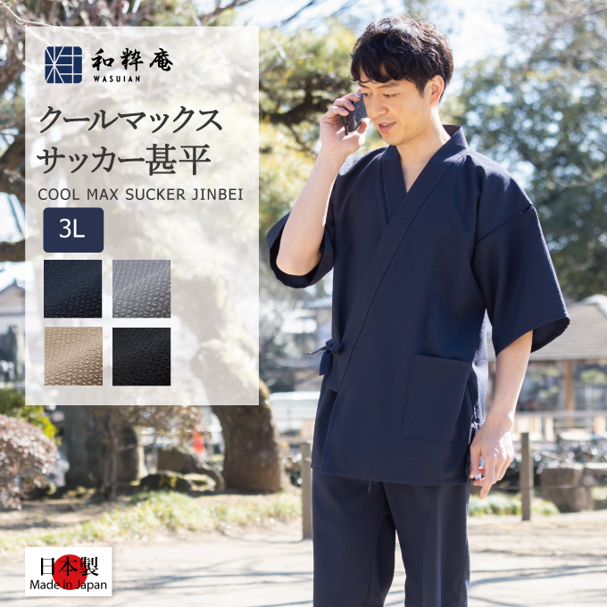 1119 3L 甚平 クールマックス・サッカー甚平 日本製 メンズ 夏用