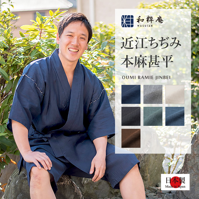 1605 3L 甚平 近江ちぢみ本麻甚平【日本製】高級 男性 メンズ 夏用