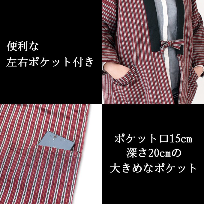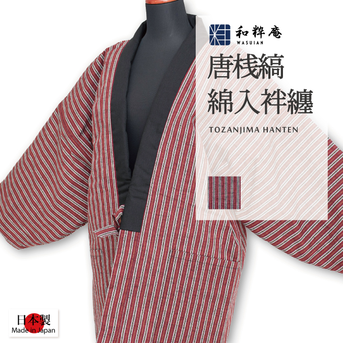 1722L 半纏 日本製 木綿はんてん 唐桟縞綿入れはんてん 女性用秋冬用