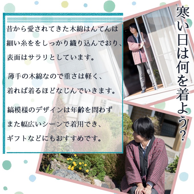 薄手の木綿で、サラリとした風合いが魅力的な品です。 日本製でしっかりとした縫製ですので、、プレゼントなど贈り物としても良いと思います。還暦や喜寿、米寿などの御祝いにプレゼントされる方も多い品です。