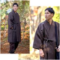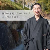 寒い時期の外出。作務衣だけでは心許ないけれど、かといって洋風のコートを合わせるのは、ちょっと…。やはり作務衣には、作務衣に似合うコートを着ていただきたい。このコートは、そんな想いから生まれました。ウール混紡の生地は型崩れしにくく、さっと羽織れる軽さが魅力的。軽快な着心地でありながらも、全身を包み込むような温もりがあります。四つ紐を結ぶ作務衣式ならではの、美しいシルエットも特徴のひとつ。日本の職人が丁寧に仕立て上げたコートで、上質な冬のお出かけを。