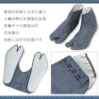 生地は表地に汚れの落ちやすいポリエステル、底に滑りにくい綿素材を使用しています。無地の作務衣にあわせて、柄足袋をアクセントでコーディネートしてみてはいかがでしょうか。お洒落は足元から。