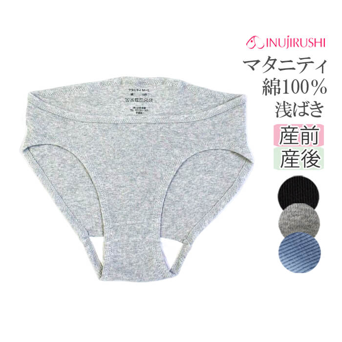 マタニティ ショーツ 浅ばきタイプ オーガニックコットン 犬印本舗 綿100% マタニティショーツ マタニティー ブラック グレー ブルー M L 下着 産前 産後