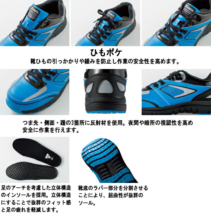 | 仕様 | 規格:JSAA規格B種認定 製法:セメント製法 重量:700g(26.0cm/両足) ウィズ:EEEE 抗菌・防臭中底、衝撃吸収、軽量SPソール、耐油性ゴム底 |