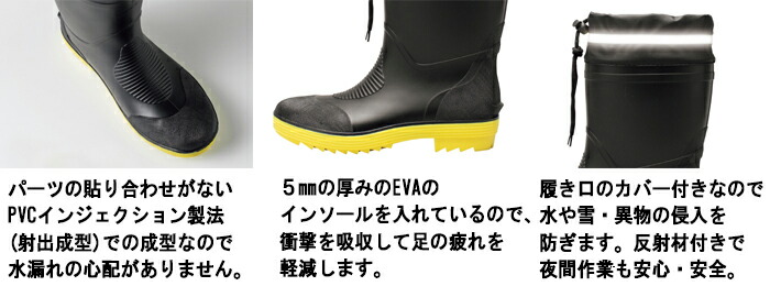 | 素材 | 先芯:スチール先芯 甲被:PVC 靴底:PVC インナー:ウレタン13mm |