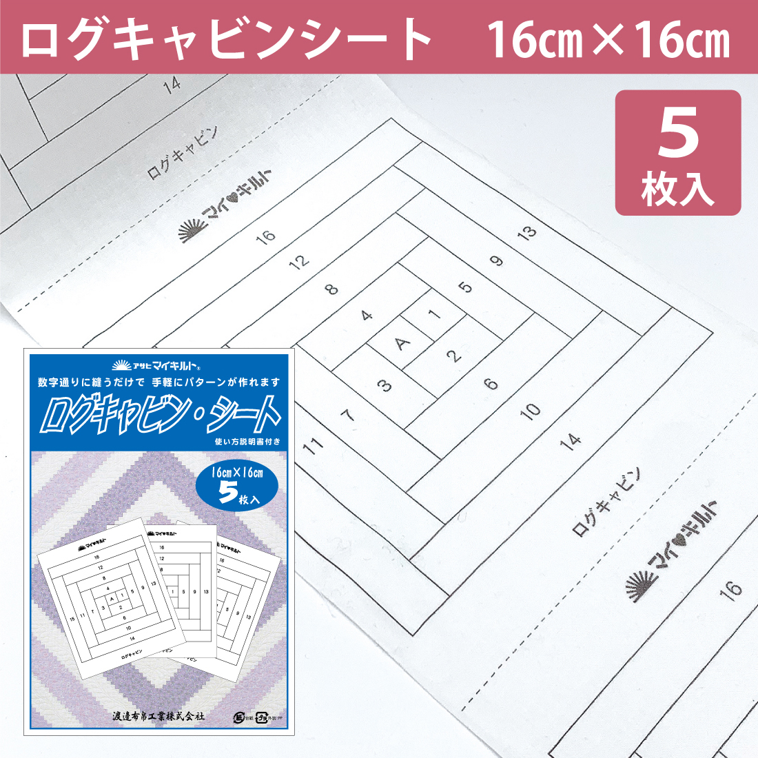 パッチワーク デザイン 図案 ログキャビン 専用 シート 5枚入 作り方 キルト 型紙 図案 種類 簡単 布 手縫い ミシン バッグ タペストリー