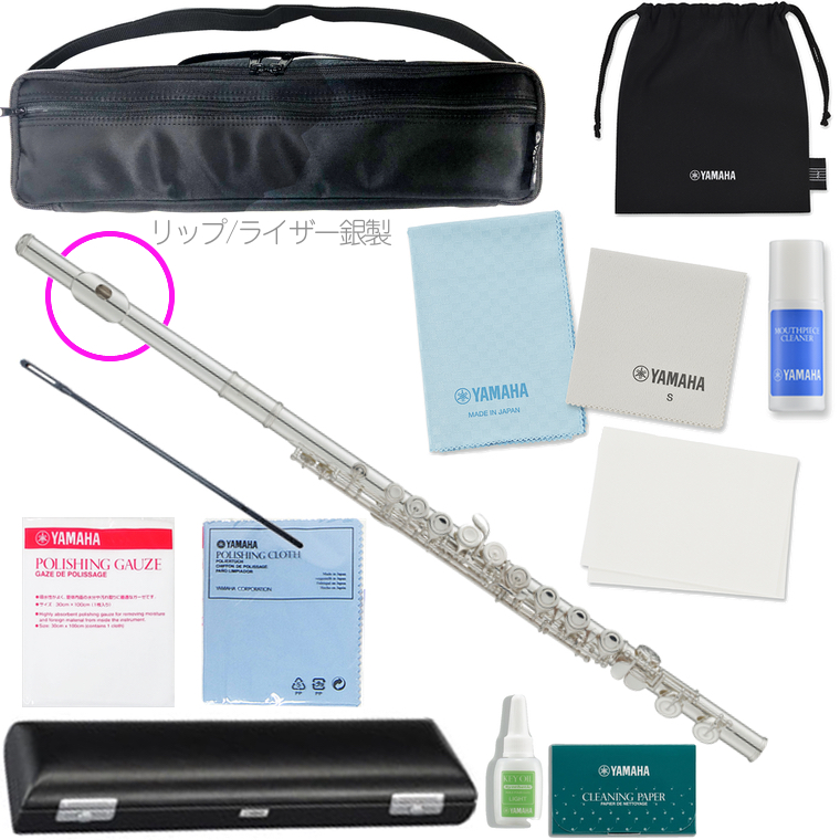 フルートは保管による状態変化がある楽器のため調整後の出荷を目指しております。一番安いYFL-212のリッププレートとライザーを銀製にしたモデルです。