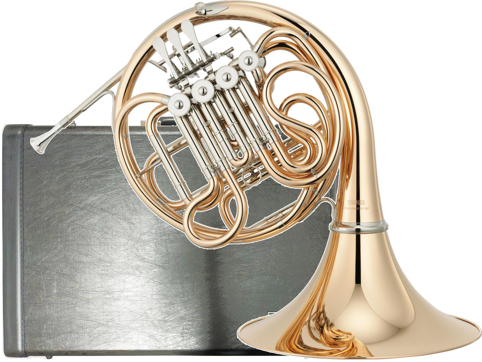 上記2つの調の管が1つになったもの。F管とB♭管の組み合わせが一般的で入門者でもこちらから使用することもあります。それぞれ独立した2つの調性をバルブで切り替えることができます。シングルに比較して音程、音色、正確性、パワーなどをレバーひとつで切り替えることで臨機応変に使い分けが出来るのですが操作性が良いということはそれだけ使用する管もパーツも多く重さがあります。フルダブルが多く使われますが、「セミダブル」というものも存在します。同じ音域ですが、全体の管の長さが少し短いセミダブルにはB♭管と、B♭管につなげてF管に出来る補正管(迂回管)がついておりフルダブルより音の出る構造が短くなります。吹奏感は異なり楽器の重さもそれだけ軽くなります。(シングルほどではない)ただしデメリットもあり、低いFの音を出す時にはF管のバルブセクションを通った後、B♭管のバルブセクションも通ることになり、管の中の凹凸を多く通る分、音が影響を受けます。