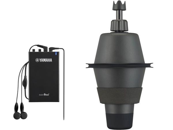 サイレントブラスは専用ミュートを手持ちの楽器のベルに装着し、専用機器を接続することによってイヤフォンから音をきいて演奏できるだけでなく同時に音量を抑えることができるヤマハの製品です。