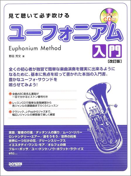 これからユーフォニアムを手にする初心者の方が、簡単な曲を吹けるようになるまでに最低限必要なことを解説した本当の入門書です。音出しから運指、音階練習等を経て、様々なジャンルの曲演奏まで無理なく進んでいけるように編集されています。楽譜の音符には運指番号と英音名がふってあり、楽譜の苦手な方でも大丈夫!レッスンCDを活用し、ユーフォニアムを吹く楽しさを是非味わって下さい。付属CDは、ガイド・メロ入りの演奏をデジタル音源で再現しています。