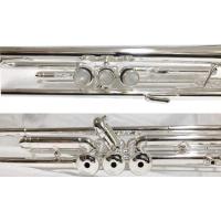 こちらはゴールドブラスに銀メッキ仕上げ。BACHの一番の定番品は180ML37SPのイエローブラス銀メッキ品。これと見た目は同じですが、イエローブラス部分をゴールドブラスにすることで、BACH特有のダークな音色が柔らかく、朗々と鳴り響きます。