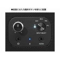 前面には入力選択ボタンを配置。Bluetoothをはじめとする各入力を個別に選択できるのはもちろん、全ての入力をONにすることも可能です。音量調整つまみやヘッドホン端子、PC等を気軽に接続できるステレオミニフォーンの入力端子も前面に搭載しています。