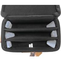 リュックタイプにした場合一番快適に背負えそうなのがこちら。別のシリーズやトリプルケースでもリュックストラップの収納状態が異なっています。チャックを開けてリュックの紐を引っ張り出すタイプと、こちらのように背面にマジックテープで収納されているタイプがあります。こちらは背負ったときに上までストラップがちゃんと外側に出ているので背負いやすいです。またコンパクトシリーズの革製はケースを縦に開きますが、こちらエリートシリーズの革製は横に開くので開けた時にしっかりと開き切ることができます。