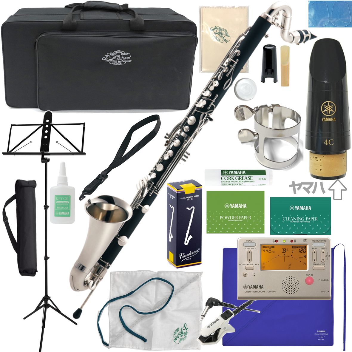 ■B♭メカニズム、LowE♭キィ付、E♭→Eレジスター切り替え、替指E♭/A♭キイ付き、ペグ付き