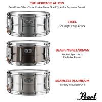 SensiTone Heritage Alloyアルミモデルはセンター部分にビード(帯)加工を施し、ブラッシュ加工により低光沢に仕上げた1.2mm厚のアルミニウム・シェルを採用。アルミシェルならではのドライでフォーカスの効いたサウンドが特徴で、様々なシーンで使える用途の広い音色を発揮。ニュアンスを大事にするドラマーのスタンダードなモデル。