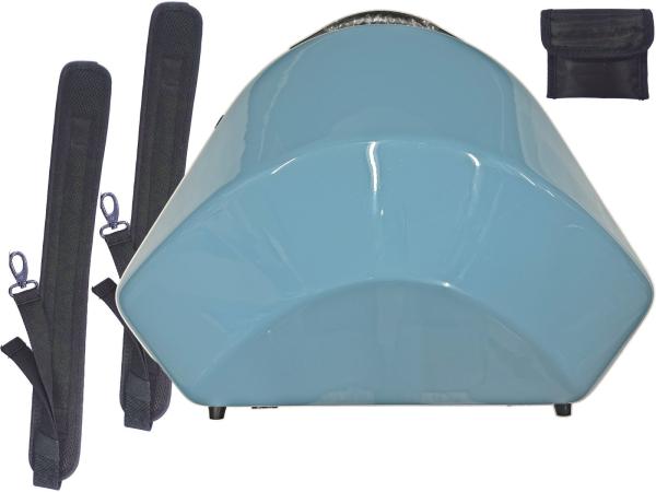 ベルをサポートするクッションが調節可能、本体側は厚さの違うクッションの入換えにより、アメリカンタイプ、ヨーロピアンタ イプ共にほとんどのメーカーのベルカットホルンを収納することができます。マウスピースを入れるポーチ/小物入れも付いています。