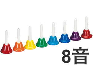 ゼンオン ミュージックベル カラーハンド式タイプ 柄の色が、ピアノの鍵盤の色と合わせてあり、とてもわかりやすくなっています。