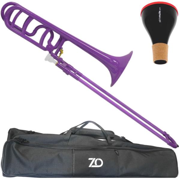トロンボーンの基本形で、B♭管テナートロンボーンです。別ブランドでpBone mini(ピーボーンミニ)においてはE♭アルトトロンボーンで、pBone、同ブランドテナートロンボーンはどれもスタンダードなものです。軽くてシンプルで使いやすいので初心者はここから手にされる方が多いです。シンプルな構造故に遠くに腕をのばさなくてはいけない音階があり苦労される方もおられます。