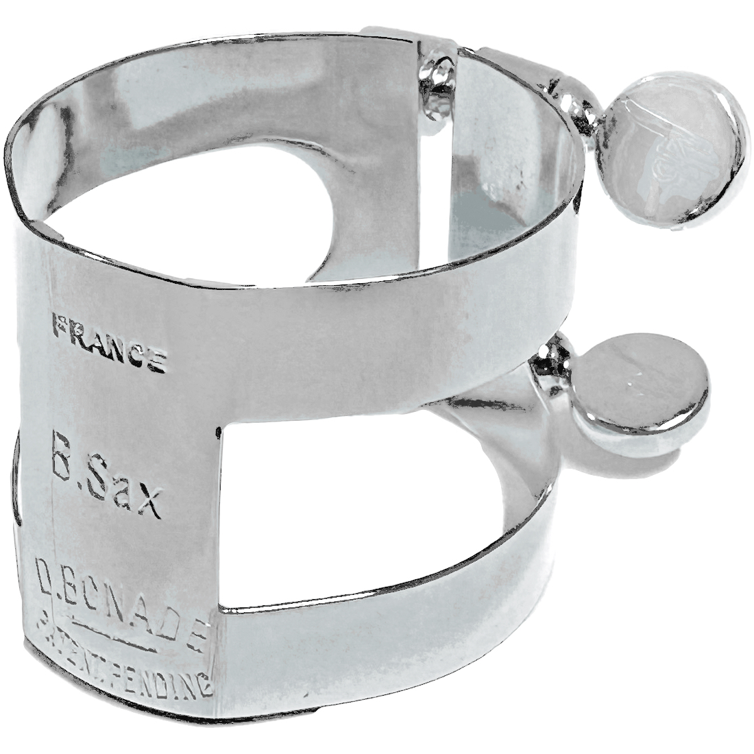 リガチャーの素材は、大まかに分けて金属製と革製が多いです。素材によって演奏するときの音色や吹奏感がかわります。ボナードは金属製です。