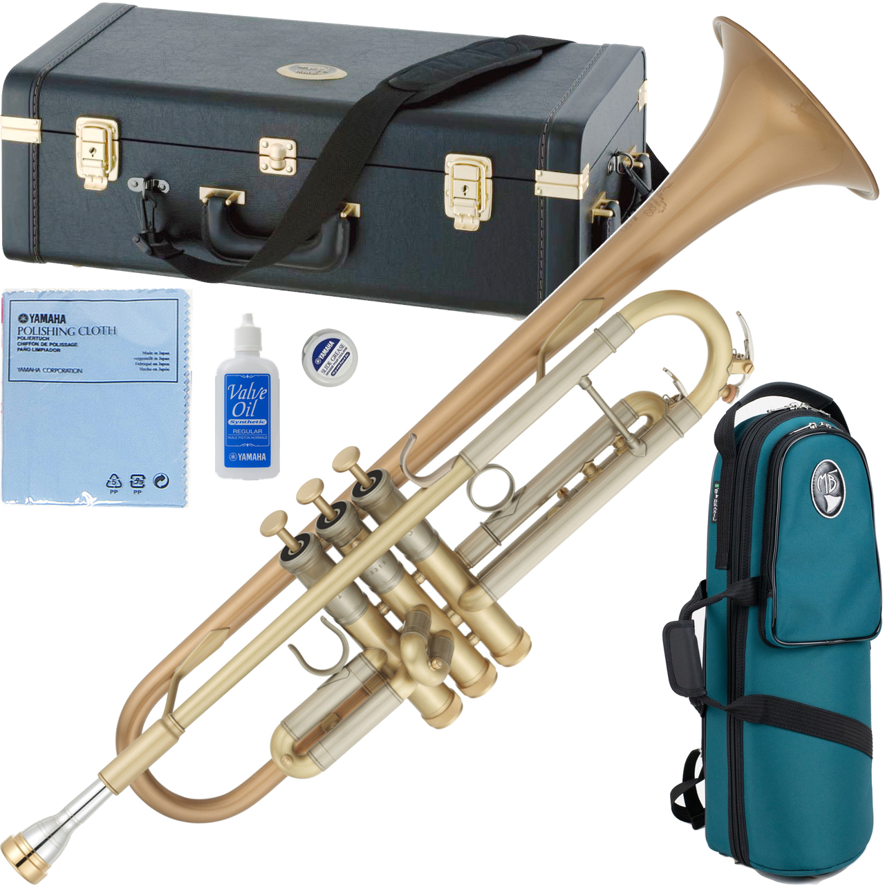 XenoシリーズのYTR-8335Gをベースモデルとして作成されたモデルです。サラサラの上からツルツルにした感じで完全ツヤ無しとは異なります。すべて手作業で行われているので1本ずつ異なった風合いになります。このような仕上げの製品はあまりありませんので見た目で気に入られた方は是非。音色も少し渋くゴールドブラス特有の暖かみあるサウンドの傾向です。また第3抜差ストッパーネジは従来のものより軽量化し金メッキで仕上げられています。これによって吹奏感と華やかさが向上しているようです。現代のジャズトランペット奏者が求める最良のバランスを実現しているとも言われるモデルです。どちらかと言うとライブハウスなどを中心に室内での演奏活動が多い方におすすめです。