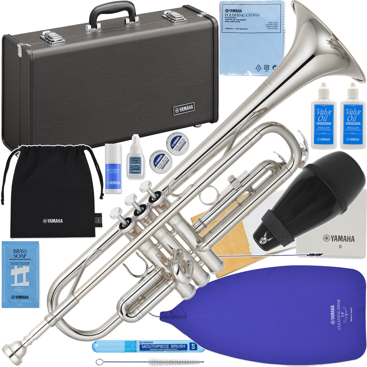 銀メッキとしてはヤマハで一番安いトランペット。イエローブラス素材に銀メッキ素材。塗装の違いによってゴールド(ラッカー塗装)よりも少し高い値段になります。銀メッキは少し抵抗感がありますが落ち着いた音色で表現力の幅が広がります。吹奏楽ではバランスを取るため銀メッキで揃えるなどもあります。トランペットは形状がシンプルですので、価格は1万円以下から御購入いただけますが、当然高いものにはそれなりの理由があります。別ページに詳しく解説していますので参考にして下さい。