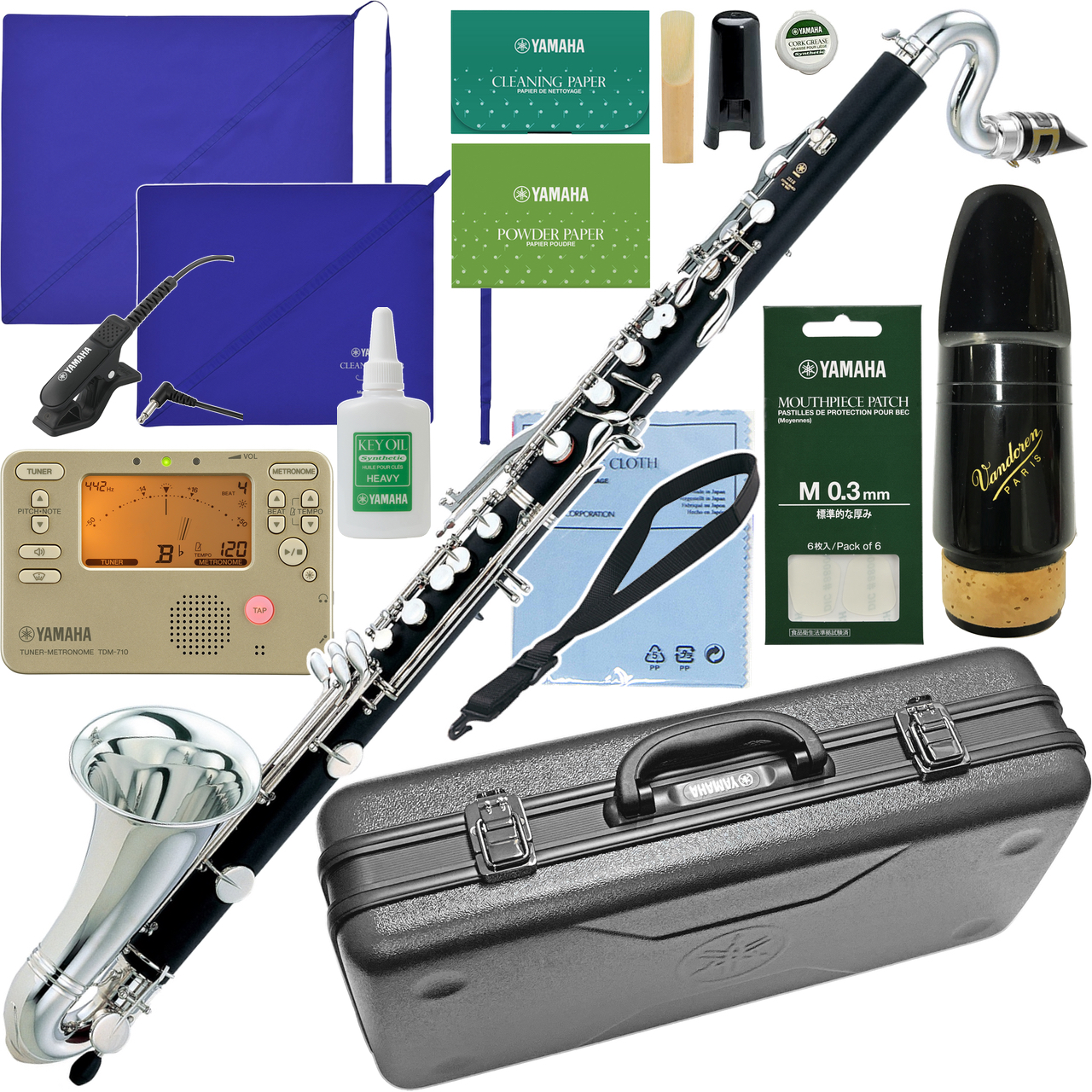 木製のようなマット仕上げが美しいヤマハのプラ管バスクラリネットです。