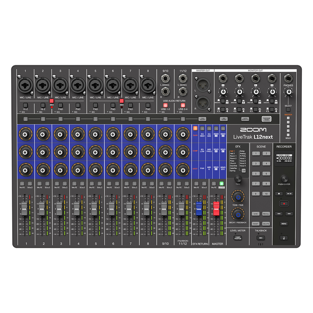 『LiveTrak L12next』は、アナログの操作性とデジタルの利便性を融合させた、12チャンネルのライブミキサー&レコーダーです。