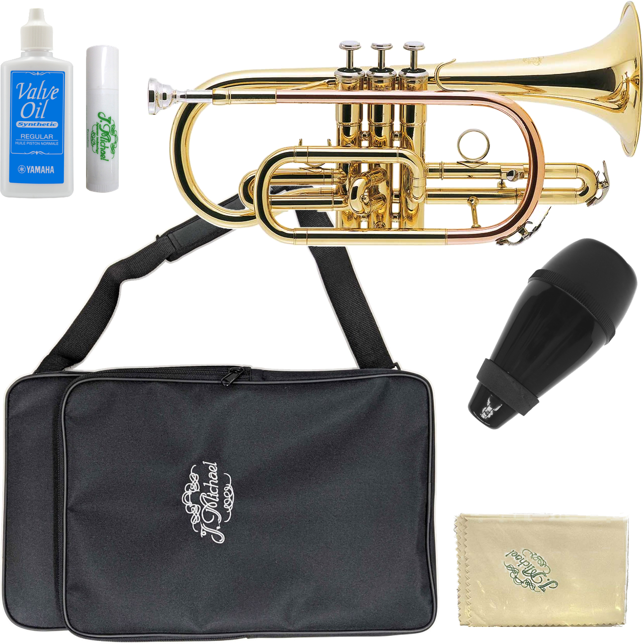 トランペットと同じ運指、音域を持ちますが、管の巻の状態などが異なり、トランペットよりも柔らかな音色です。フレーズの移り変わりも滑らかでゆったりとした演奏をお楽しみ頂けます。サイズが小さくなりますので小学生などの金管バンドなどでも取り入れられることがあります。