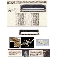 世界でも最も愛用者が多く、ゆず、コブクロ、長渕剛、山崎まさよしなどの使用により若者にも大人気の10ホールズ(テンホールズ)。一番売れてる10穴ハープがホーナー社のブルースハープということから、ブルースハープという名前の方が一般的かもしれませんが、ブルースハープは商品名ですのでご注意を。幼稚園や小学校で童謡を吹いたハーモニカよりも小さく、また演奏方法も少し違います。ブルース音楽の象徴的な楽器であり、ロック、ニューミュージック、フォークのプレイヤーからも愛されています。 中央の4穴で完全に1オクターブをカバーし、上下の音階は和音演奏を考慮した配列になっています。演奏されたい曲のキーに合ったハーモニカを選ぶことから、残念ながら1本あれば全てOK!というわけではありません。メジャー(長調)とマイナー(短調)合わせて24本のハーモニカがいることになりますが、マイナーなどはあまり使用されませんし、必要によって揃えていくものですのでご安心下さい。まずは1本から。なんとなく始めてみたい方、何がなんだかさっぱり分からない方、プレゼントにちょっと...という方々にはC調がおすすめです。教室、教本などでも、最初に使用するのが多いのはC調ですので教本があれば一人ででもぼちぼちと練習できるのではないでしょうか。曲のキーと違うハーモニカを選ぶこともありますので演奏したい曲が決まっている方はよく調べてみましょう。10穴ハープは単音でメロディを楽しむことはもちろん、同時に3個の穴に息を入れることによって和音も演奏出来るのです。選ぶハーモニカを間違わなければアドリブでハーモニカを吹いても曲のキーから外れて音痴になる、といったこともないということですね。あとはこのハーモニカに魅力的なベンド奏法です。ベンドは簡単にいうと音を下げる奏法のことで、少しコツが要りますがこれを取り入れることで独特のニュアンスが表現できます。 ■【樹脂(プラスティック)ボディ】...安くて初心者向けです。気密性が高いので、息を入れた時の音の立ち上がりが早く、演奏がしやすく感じられます。硬めの音で音量も大きいです。頑丈で手入れにもさほど気を遣わないとこも良いですね。 ■【木製ボディ】...息の入れ方が少し難しいと言われていますが出た音はとてもキレイです。木製であることから水分を木が吸収し、なじむまで少し時間がかかります。そのため樹脂製と比べ音の立ち上がりが遅く感じられます。樹脂製は本体に水分が吸収されることはないですが木は水分を含み膨張してしまうことがありますのでお手入れをして大事にして下さい。 以上のような事はブルースハーモニカの教本で紹介されています。ハーモニカの教本の中では一番種類も多く、お近くの本屋さんでも教本は手に入るかもしれません。今はインターネットで少し調べれば出てくる情報もありますので、分からないことがあれば調べて見て下さいね。その他、ご不明な点やご要望などがございましたらお気軽にメールでお問い合わせ下さい。